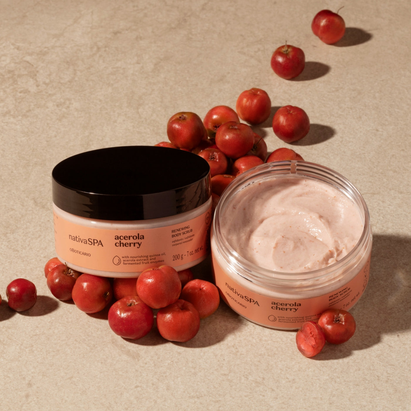 The Acerola Cherry Renewing Body Oil renews the skin’s appearance, by moisturizing and leaving it with a luminous glow.